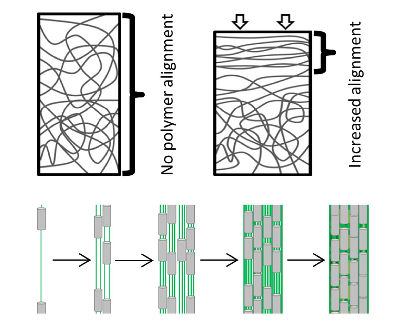 Cells can adapt their motion to the environment by sensing the mechanical and chemical cues. We discovered a new mode of mechanosensing in M. xanthus bacteria where when the polysaccharide fibers in agar are forced into alignment and to pack tightly via compression, groups of M. xanthus cells change their movements to match the orientation of the long axes of the fibers. We termed this behavior polymertropism. This behavior is shared among many rod, motile bacteria. Polymertropism could play a role in biofilm formation via slime trail following, where the aligned polysaccharide fibers secreted by one cell could provide a trail for another cell to follow.